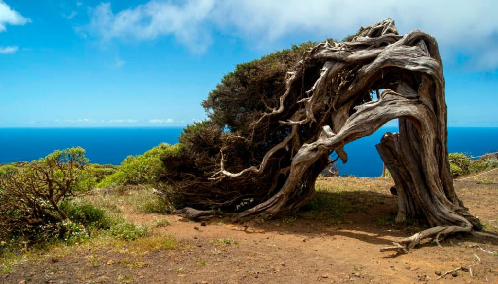 La isla de El Hierro se caracteriza por ser una isla eminentemente rural, con una multitud de paisajes de lo más variopintos, desde un monte verde en la vertiente sur de la isla debido al soplo de los alisios y al rebosar de la bruma, un pinar canario, un bosque de retorcidas sabinas por el viento, una meseta “Nisdafe” donde abundan los muros de piedra seca para delimitar los terrenos y evitar que se salgan los animales, hasta hermosas coladas de lava con formas caprichosas debido a su enfriamiento en dirección al sur.